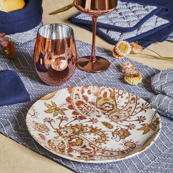 Servizio piatti in porcellana con decoro foglie, multicolor.