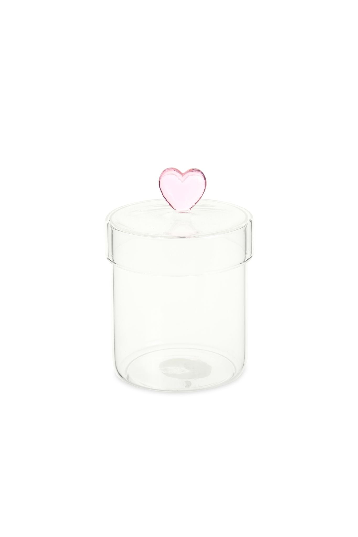 Barattolo in vetro borosilicato con cuore rosa.