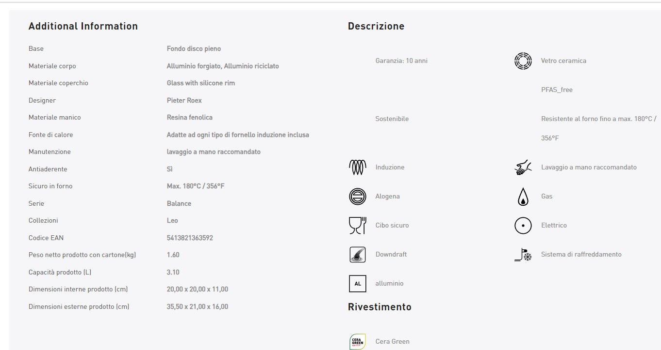 - Rivestimento antiaderente ceramico salutare CeraGreen (PFAS -free)
