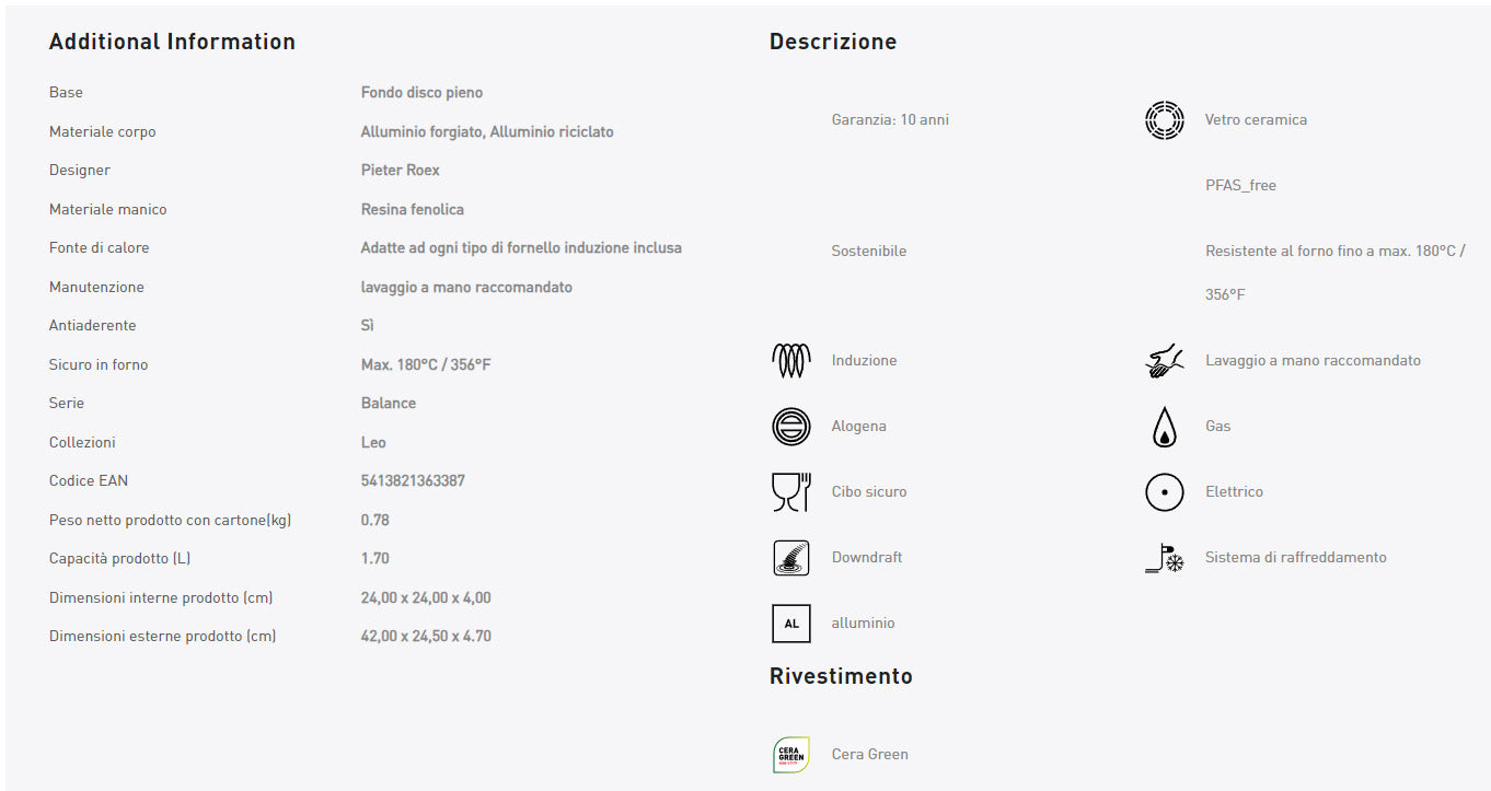 - Rivestimento antiaderente ceramico salutare CeraGreen (PFAS -free)