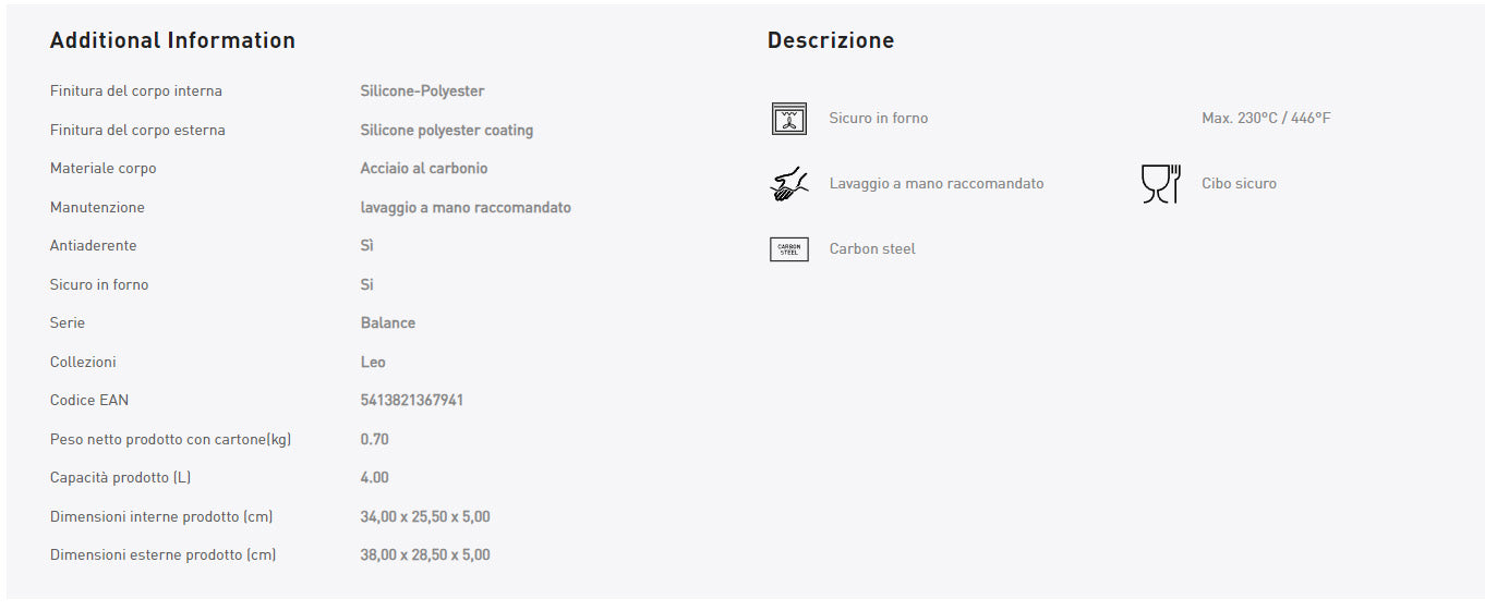 Brownies al cioccolato, una pizza o una classica torta di carote, i tuoi dolci e salati trionferanno sicuramente quando li cuocerai in questa teglia rettangolare! Grazie al materiale in acciaio al carbonio e alla superficie a trama diamantata, queste deliziose prelibatezze vengono cotte in modo piacevole e uniforme, mentre il rivestimento antiaderente di alta qualità garantisce un rilascio del cibo. Vuoi assicurarti che tutti ricevano un pezzo altrettanto grande? Basta usare le comode linee a griglia sul lato per realizzare porzioni uniformi!