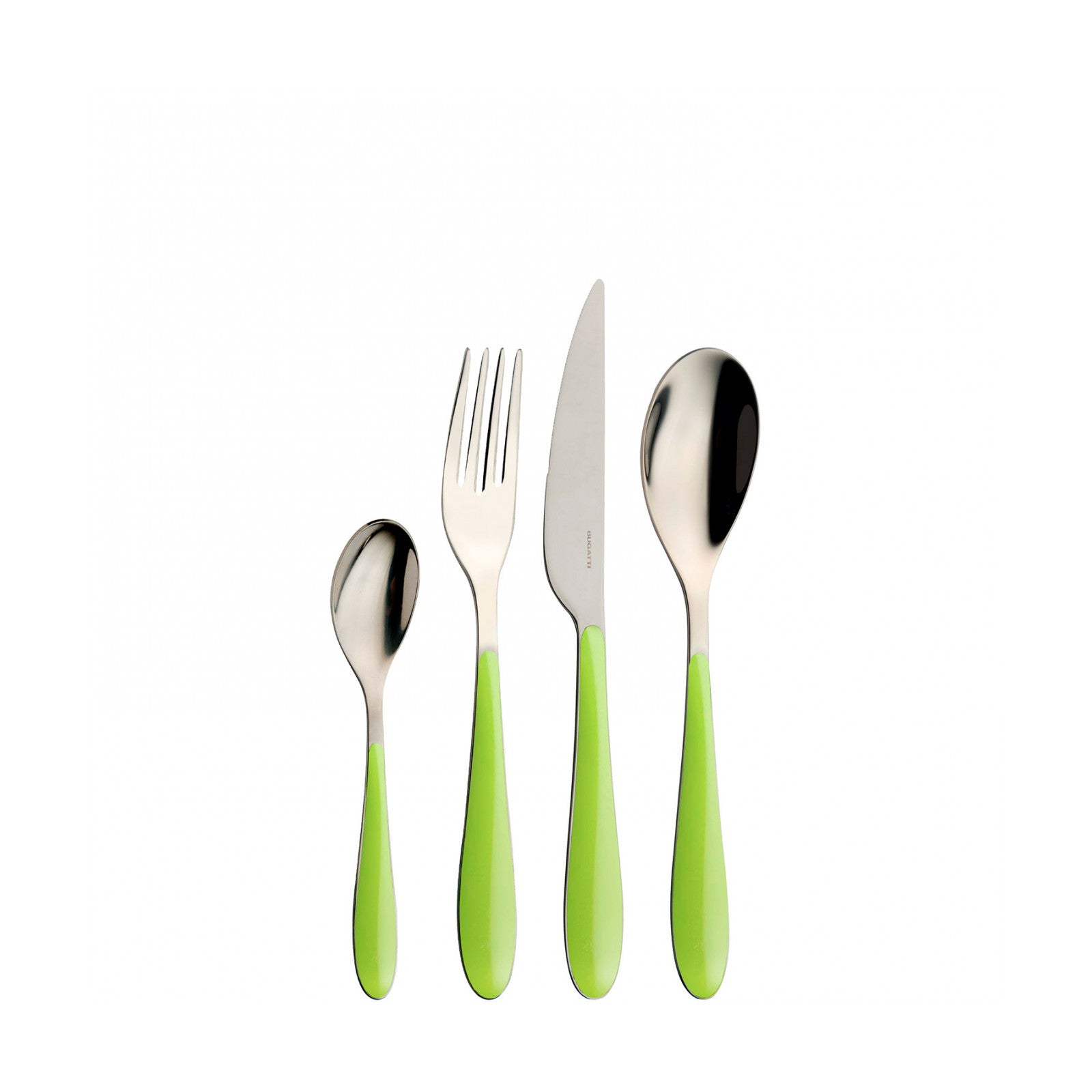 Le posate colorate Gioia portano sulla tua tavola un tocco di colore, per accendere l'entusiasmo in qualunque occasione. Sono posate in acciaio inox 18/10 con manici colorati in ABS e sono lavabili in lavastoviglie.