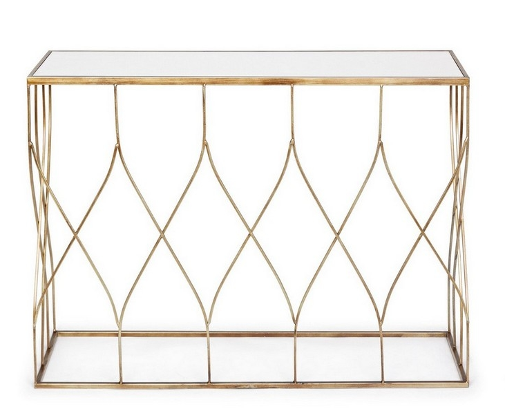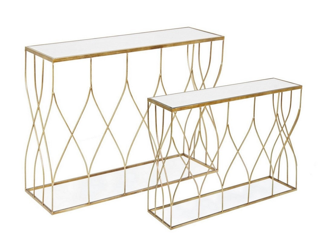 Questa consolle dorata in metallo, con piano in vetro, aggiungerà un tocco di eleganza e stile a qualsiasi spazio. Il piano in vetro offre una superficie resistente e facile da pulire, mentre la robusta struttura in metallo garantisce una lunga durata. Perfetta per aggiungere un tocco di classe a casa tua.