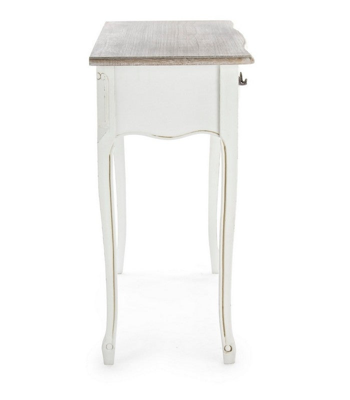 La nostra consolle in legno, dallo stile shabby, è dotata di due cassetti e un ripiano impiallacciato. La soluzione perfetta per aggiungere un tocco di eleganza e praticità alla tua casa. Realizzata con materiali di alta qualità, garantisce resistenza e durata nel tempo.