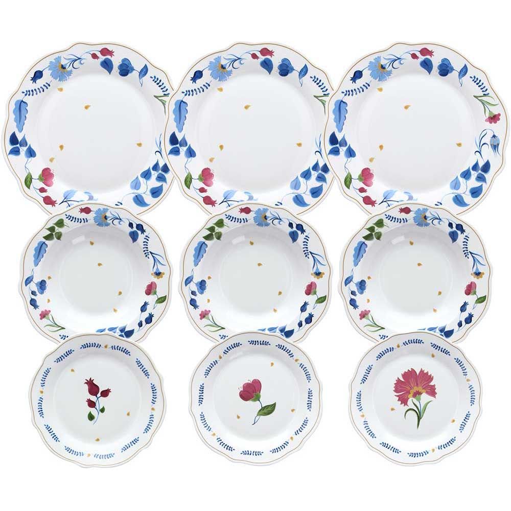 Il set comprende: 6 piatti piani, 6 piatti fondi, 6 piatti dessert.