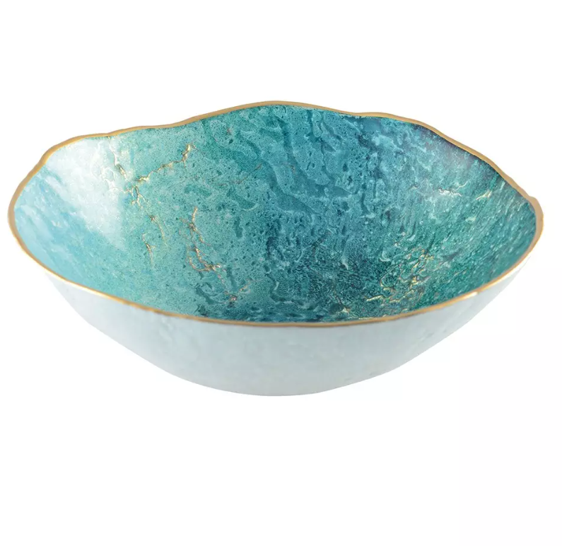 Ciotola turchese con bordo dorato