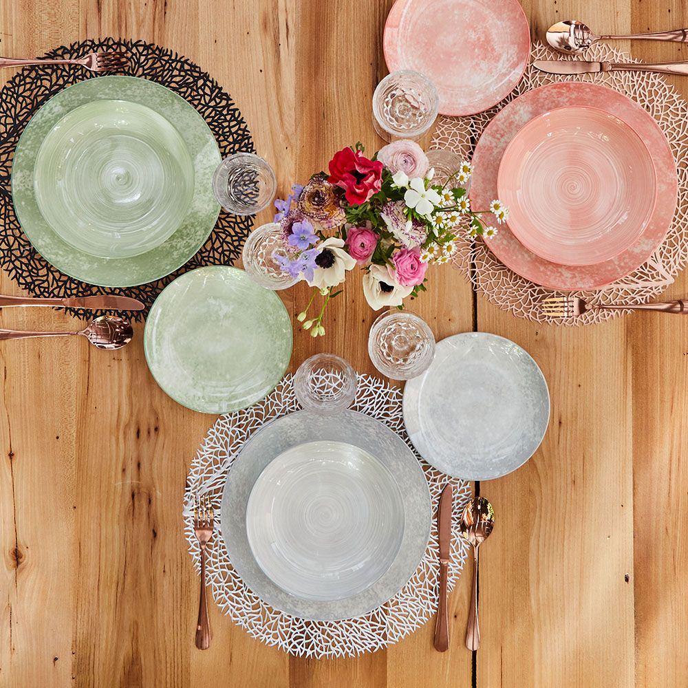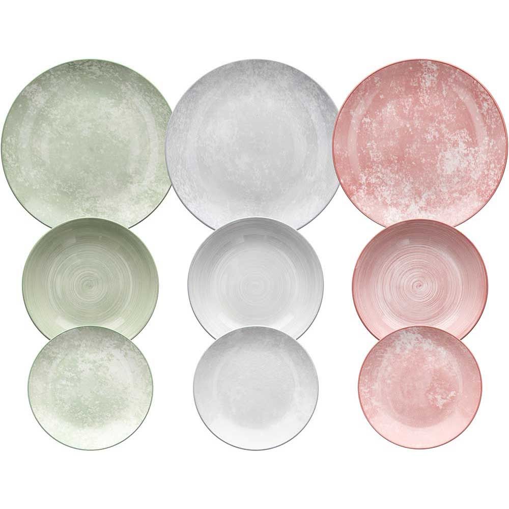 Con il servizio piatti da 18 pezzi Petra di Tognana porterai in tavola colore e vivacità uniti ad un tocco di eleganza in più, grazie alle tonalità verdi, grigie e rosa, fresche e tenui che richiamano la bella stagione, e alla porcellana che lo rende fine e raffinato. Il servizio piatti 18 pezzi Petra è lavabile in lavastoviglie ed idoneo all'utilizzo in microonde.