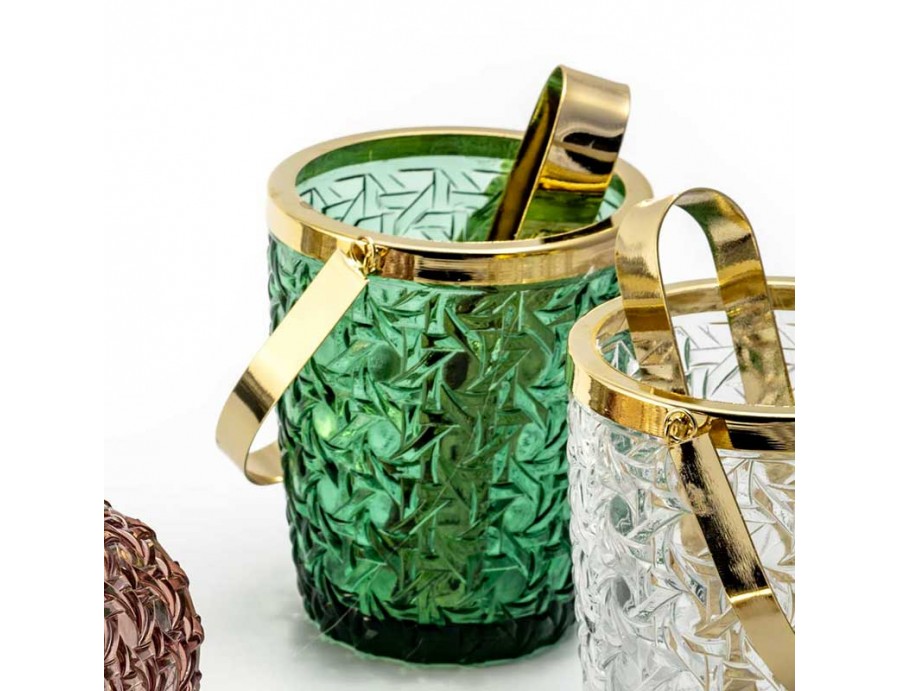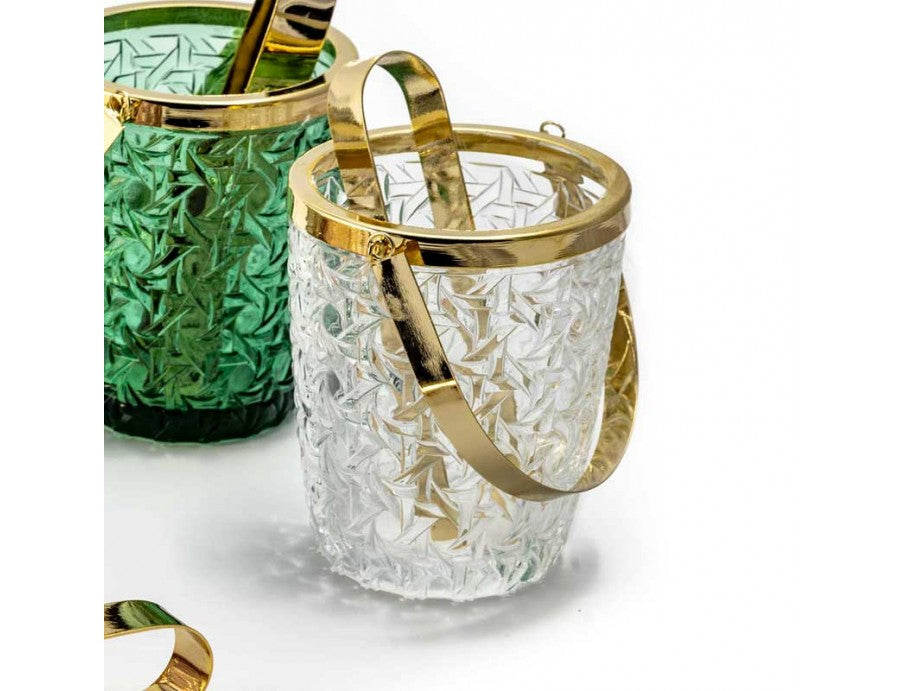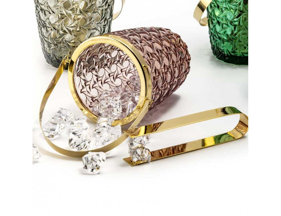 Cestello porta ghiaccio diamantato con pinza prendi ghiaccio. H 12 cm.