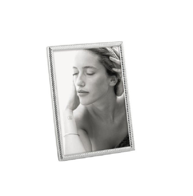 Portafoto in silver con decoro a rilievo. Color acciaio. Retro in velluto. Possibilità di orientarlo sia verticale che orizzontale.