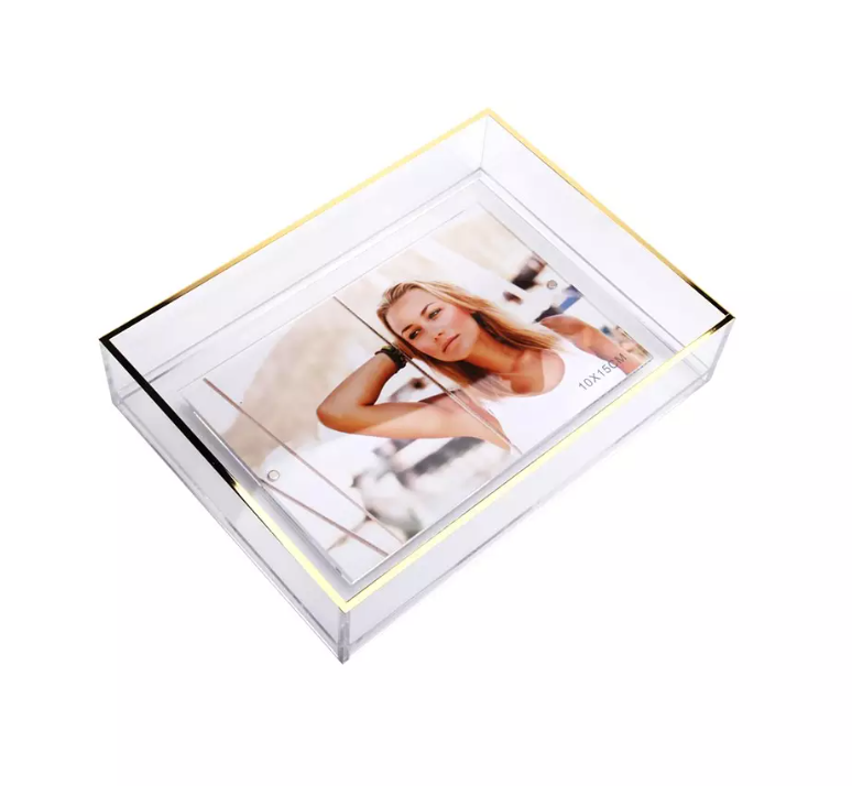 Portafoto in acrilico con bordo dorato 10x15 cm