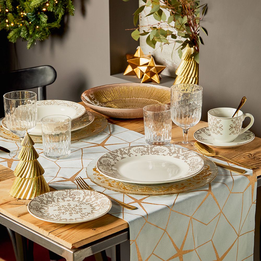 Per una mise en place delle feste impeccabile, il servizio piatti da 18 pezzi Retrò del marchio Andrea Fontebasso è la scelta perfetta: sulla porcellana bianca si alternano decori arasbesque dai toni beige-oro, pensati da abbinarsi al tessile Mikado per ricreare un'atmosfera festosa e scintillante. Il servizio piatti 18 pezzi Retrò è lavabile in lavastoviglie ed idoneo all'utilizzo in microonde.