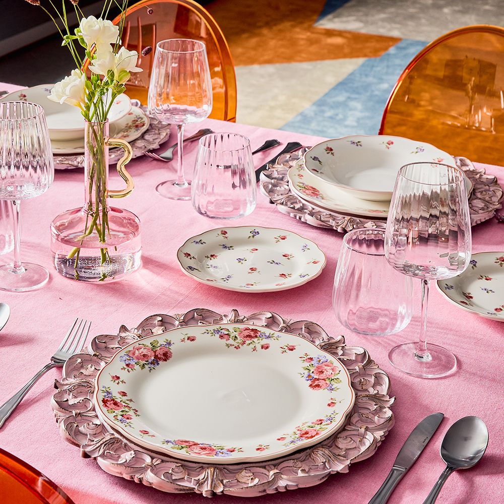 Il servizio piatti 18 pezzi Camargue per 6 persone del marchio Andrea Fontebasso è realizzato in porcellana bianca con dei delicati decori floreali rosa e lilla, e il bordo color arancio mattone, per uno stile vintage ed elegante, ripreso anche dalla forma dei piatti. Composto da 6 piatti piani, 6 piatti fondi e 6 piatti dessert il servizio piatti Camargue è ideale per allestire la tua tavola pasquale e primaverile dai toni freschi e leggeri, da abbinare a tutti i complementi tavola della linea, per un set completo e coordinato. I piatti Camargue sono idonei al lavaggio in lavastoviglie e all'utilizzo in microonde