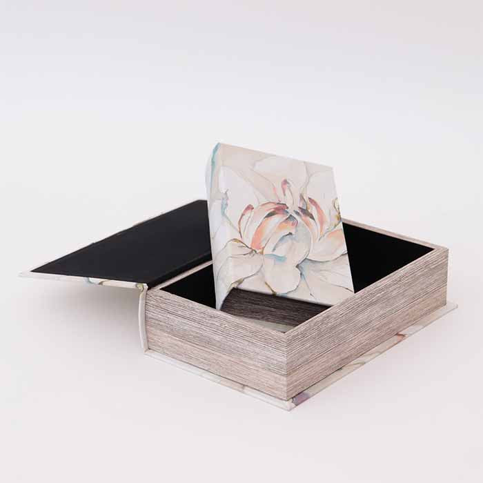 Scatola portaoggetti, con chiusura magnetica, internamente rivestita in velluto. Ideale come svuotatasche o come semplice oggetto da arredo.