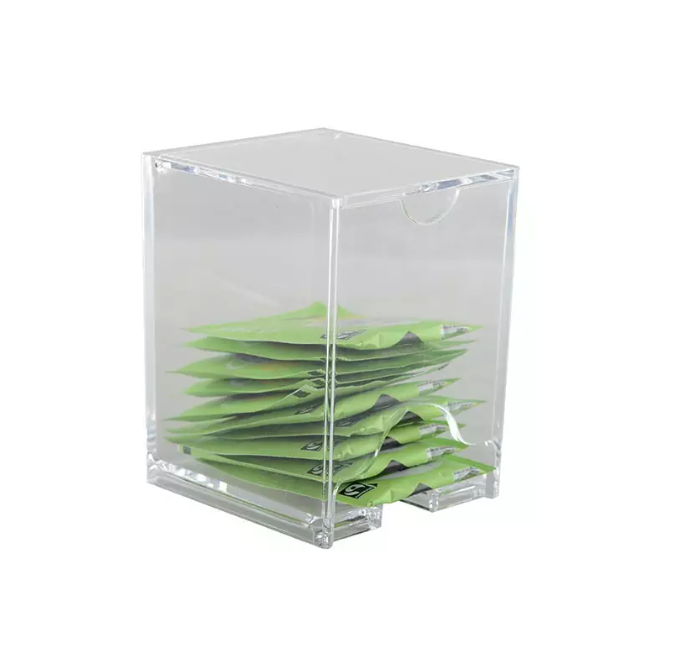 Una pratica scatolina in acrilico, perfetta per riporre le bustine del the e delle tisane.