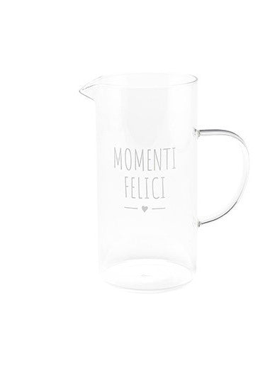 Brocca in vetro borosilicato. Disponibile con la scritta "Buona e fresca" o " Momenti felici".