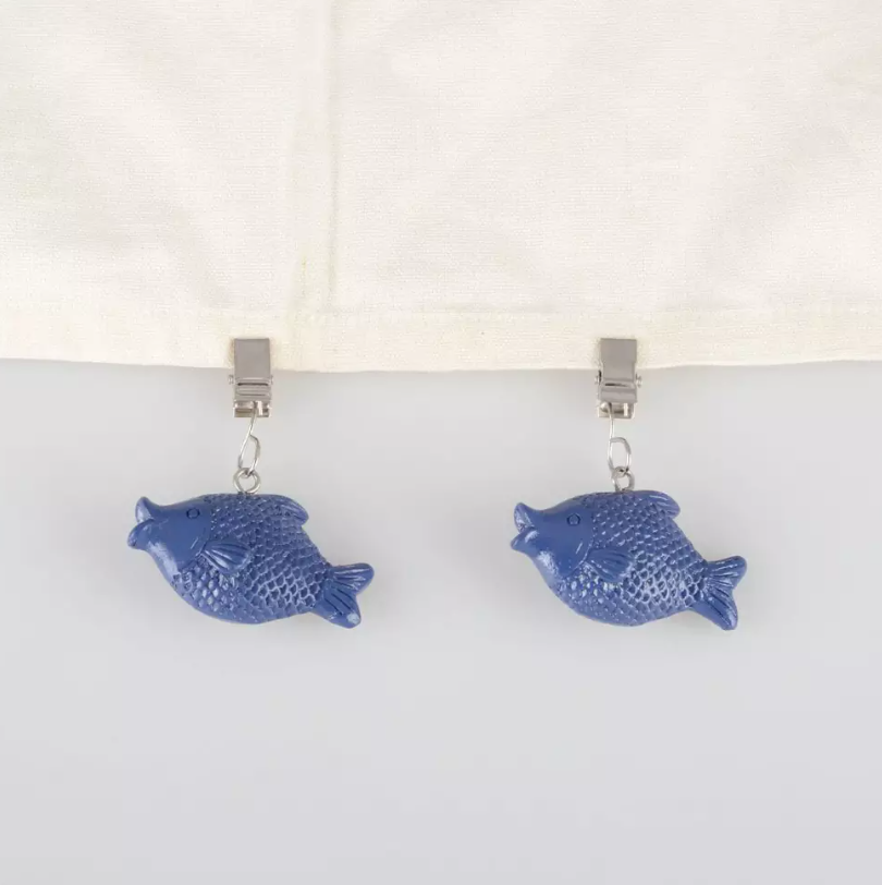 Dai un tocco di estate alla tua tavola con il set 4 pesi fermatovaglia a forma di pesce blu.