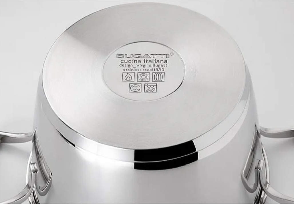 Utilizzabile su tutti i piani cottura: induzione, gas, elettrico, ceramico, alogeno. Fondo ad alto spessore (3 strati: acciaio, alluminio, acciaio) per una ottimale distribuzione del calore.