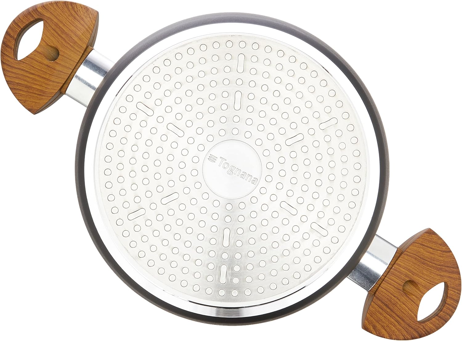 - Rivestimento interno antiaderente rinforzato con polvere di diamante, resistente ai graffi fino 100.000 cicli di utilizzo con utensili metallici.