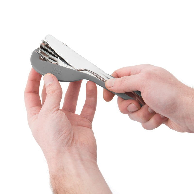 Siete pronti per gustarti un pasto in movimento con questo set da viaggio composto da 3 pezzi! Offre un'ottima alternativa alle posate usa e getta e può essere facilmente conservato e trasportato nella sua custodia in silicone. Quando è ora di pranzare o fare uno spuntino, tirate fuori il coltello, la forchetta o il cucchiaio di acciaio inossidabile e goditi una pausa gustosa. Una volta che avrete finito, mettete le posate in lavastoviglie per una facile pulizia.