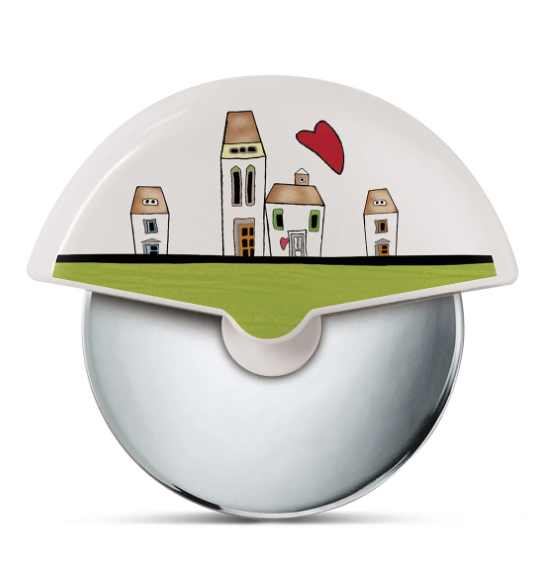 Il Tagliapizza ‘Le Casette’ di EGAN, con la sua superficie decorata dalle tipiche casette italiane e un cuore caldo disegnato con cura, è lo strumento perfetto per aggiungere un tocco di amore e allegria alla tua esperienza culinaria. La lama in acciaio inossidabile garantisce una perfetta esecuzione nel taglio delle tue pizze, mentre il design ergonomico assicura una presa comoda e sicura. Questo tagliapizza non è solo un utensile pratico, ma anche un pezzo da conversazione che porterà lo spirito dei borghi italiani direttamente nella tua casa.