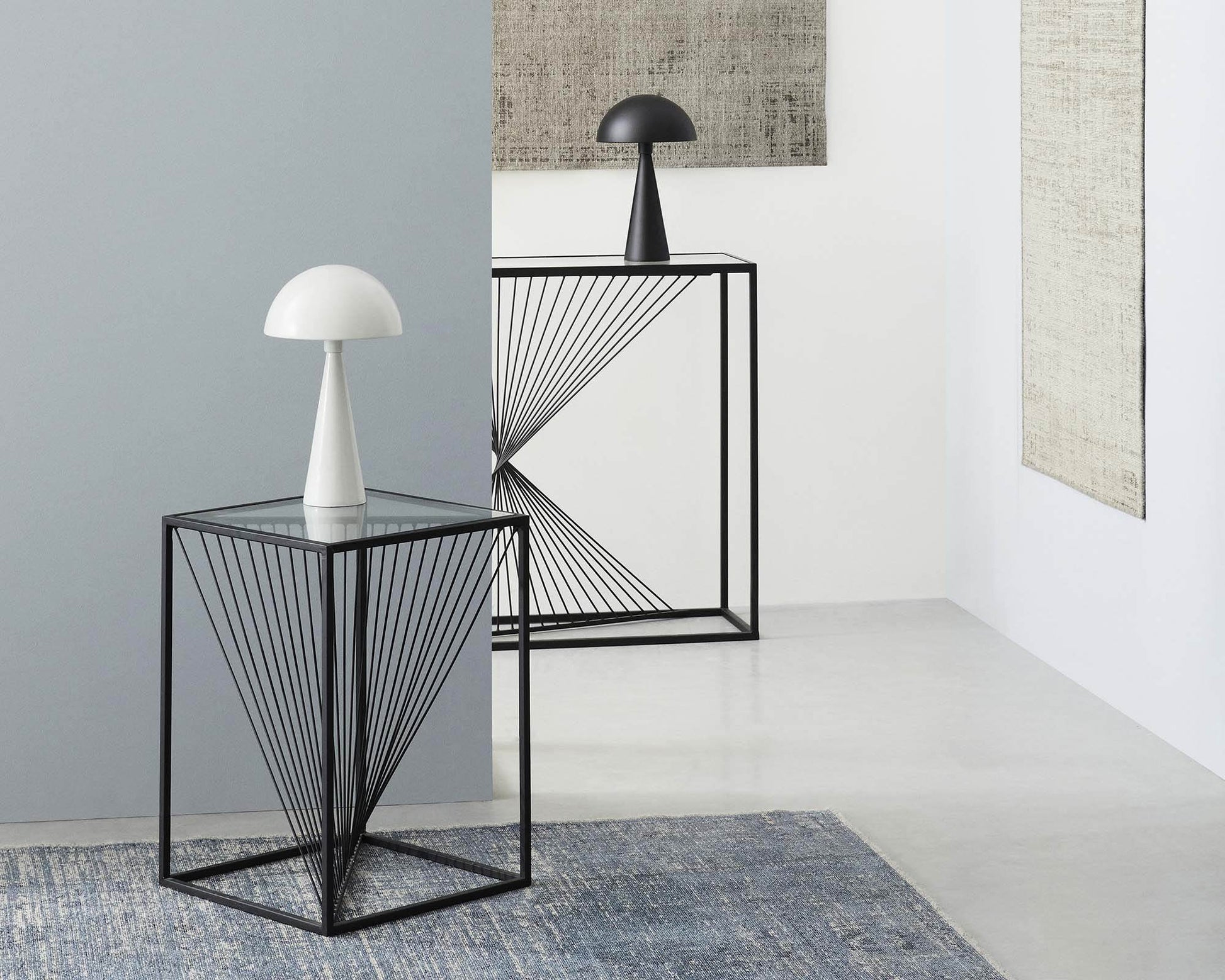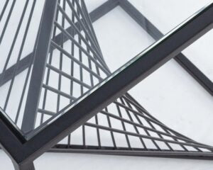 Tavolino in acciaio nero con ripiano in vetro
