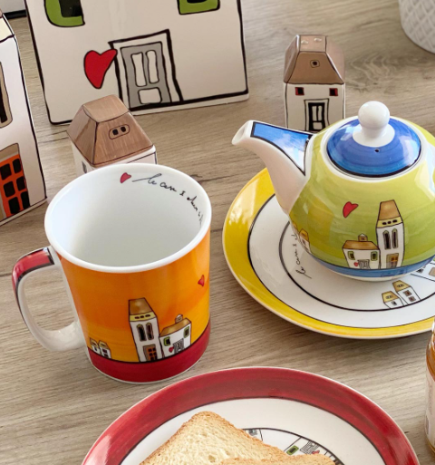 Questa tazza “Mug Le Casette” da 430 ml è una vera delizia per gli occhi e per lo spirito, un omaggio alla gioia di vivere. Ogni dettaglio è pensato per portare allegria, dal colore vivace al cuoricino sopra il campanile che sembra quasi battere al ritmo dei tuoi giorni. Porta un pezzo di poesia nella tua routine con il nostro “Mug" Le Casette.