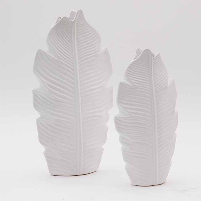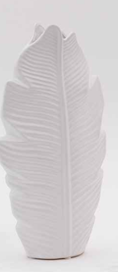 Vaso in ceramica bianca, a forma di foglia. Con i suoi decori a rilievo arreda ogni ambiente con stile ed eleganza.