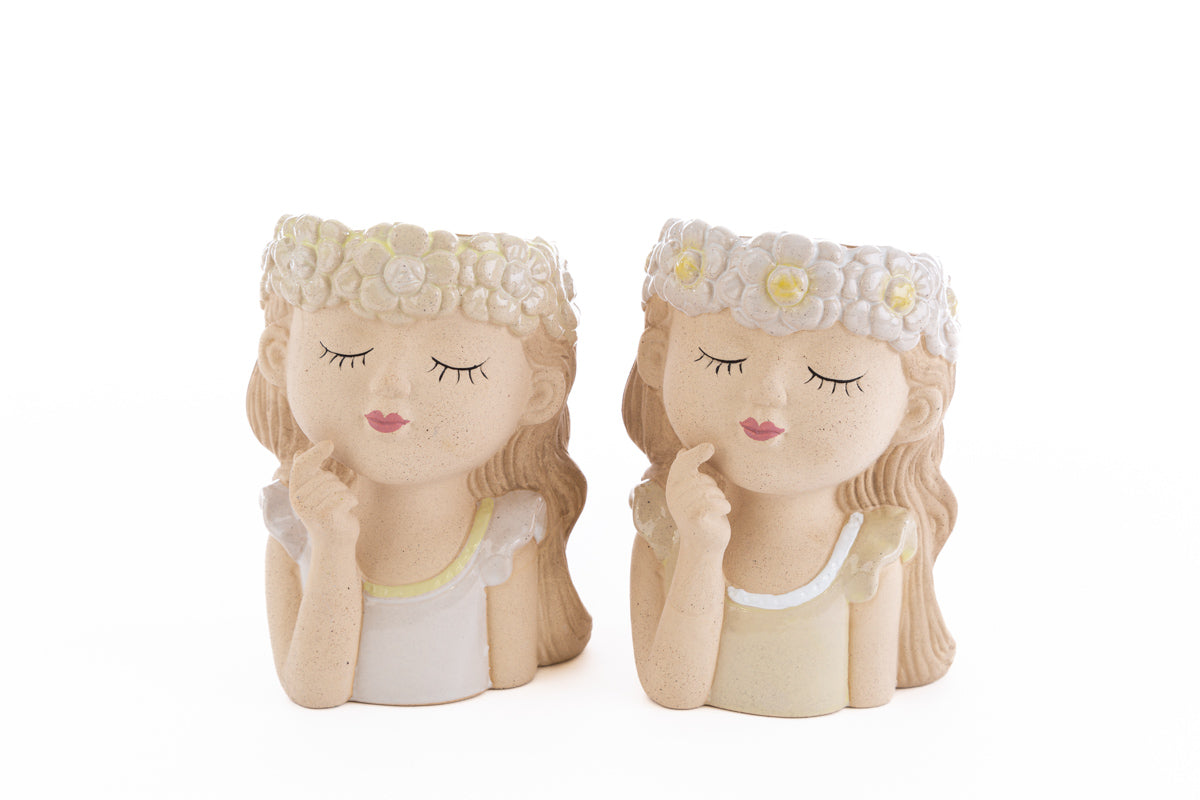 Questo vaso in ceramica raffigura il viso di una ragazza ed è perfetto per contenere piante o fiori. Realizzato con grande attenzione ai dettagli, aggiungerà un tocco unico e artistico alla tua casa o giardino. Un'ottima scelta per chi ama l'arte e la natura.