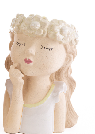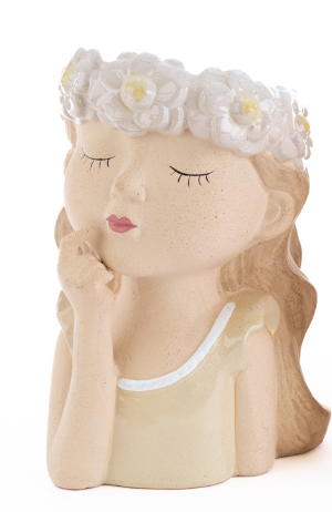 Questo vaso in ceramica raffigura il viso di una ragazza ed è perfetto per contenere piante o fiori. Realizzato con grande attenzione ai dettagli, aggiungerà un tocco unico e artistico alla tua casa o giardino. Un'ottima scelta per chi ama l'arte e la natura.
